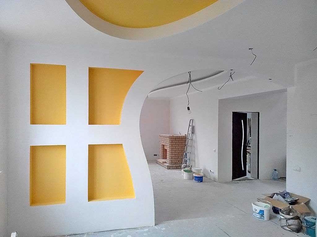 - Alçıpan levhalar mükemmel düz bir yüzeye sahiptir, bu nedenle kaba tabanları tesviye etmek için satın alınabilirler. Bu zemin, tavan ve duvarlar olabilir. Ana şey, tüm işleri doğru ve düzgün bir şekilde yapmak, alçı montajı için temelleri hazırlamaktır.